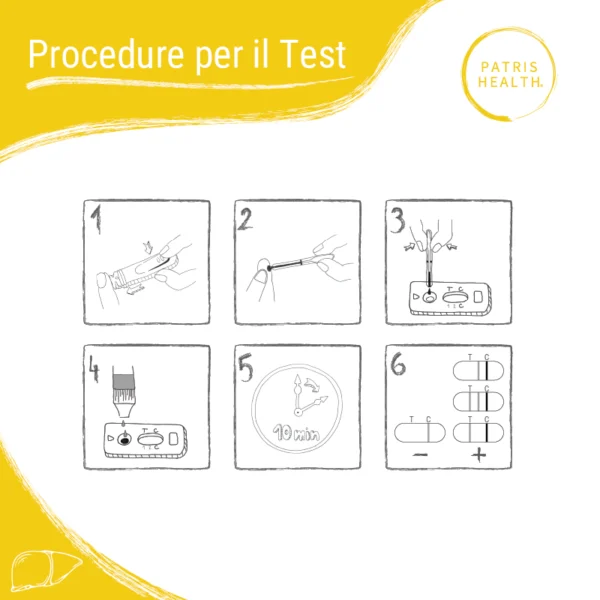 - Istruzioni per l’uso dettagliate con la procedura per il test illustrata passo per passo.